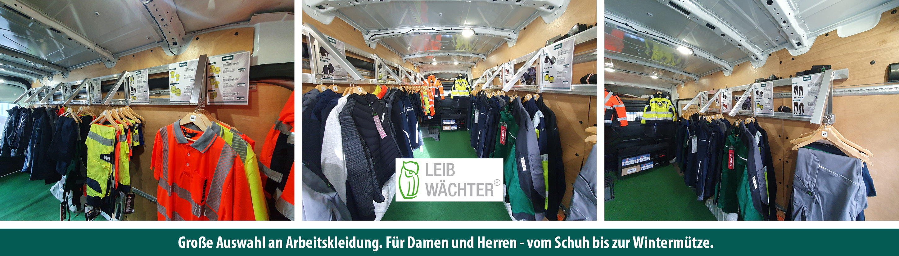 Unser Vorführfahrzeug kommt zu Ihnen vor die Tür, damit Sie in Ruhe die perfekte Arbeitskleidung für Sie und Ihre Mitarbeiter finden können. Einfach im Fahrzeug umschauen und anprobieren.